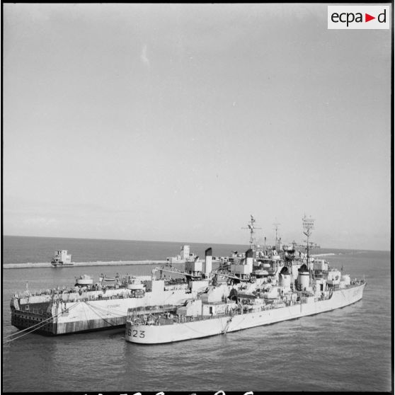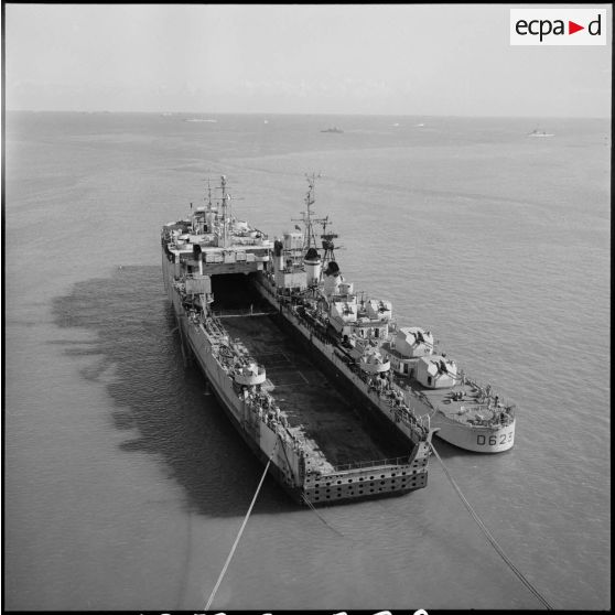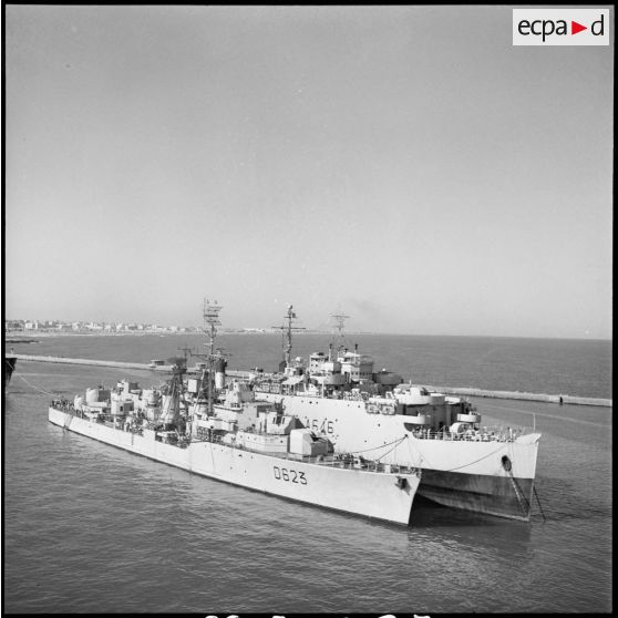 Le transport de chalands de débarquement La Foudre et l'escorteur d'escadre Cassard à Port-Saïd.