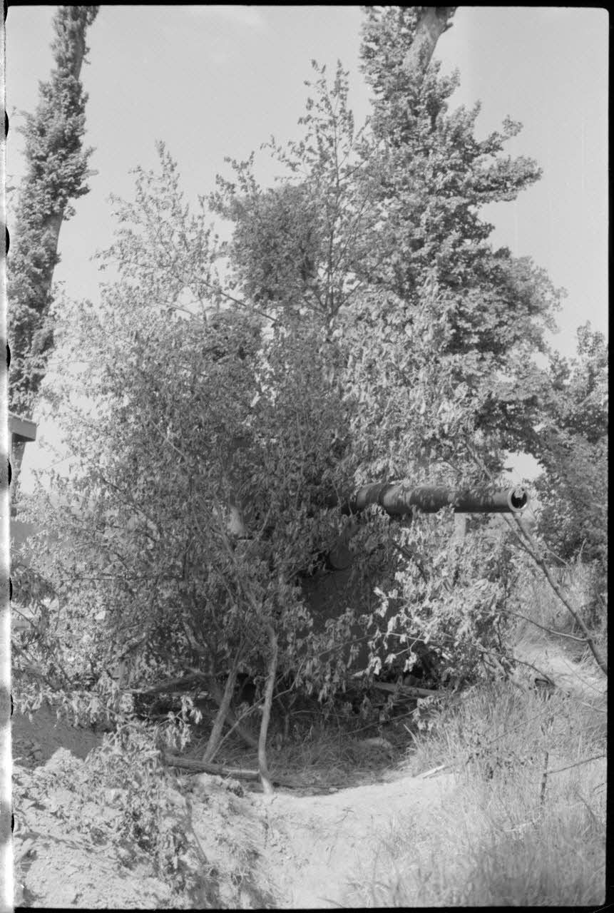 Une pièce de 8,8 cm FlaK camouflée par la végétation.