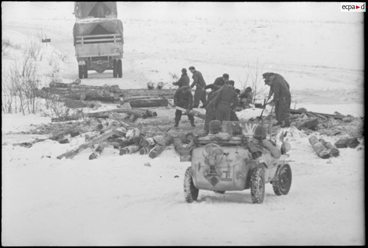 Consulter le reportage Pk697 film 969 pour retrouver des portraits du capitaine). Le reporter est à bord d'une voiture amphibie " Schimmwagen " et photographie le lieutenant Albert Ernst.