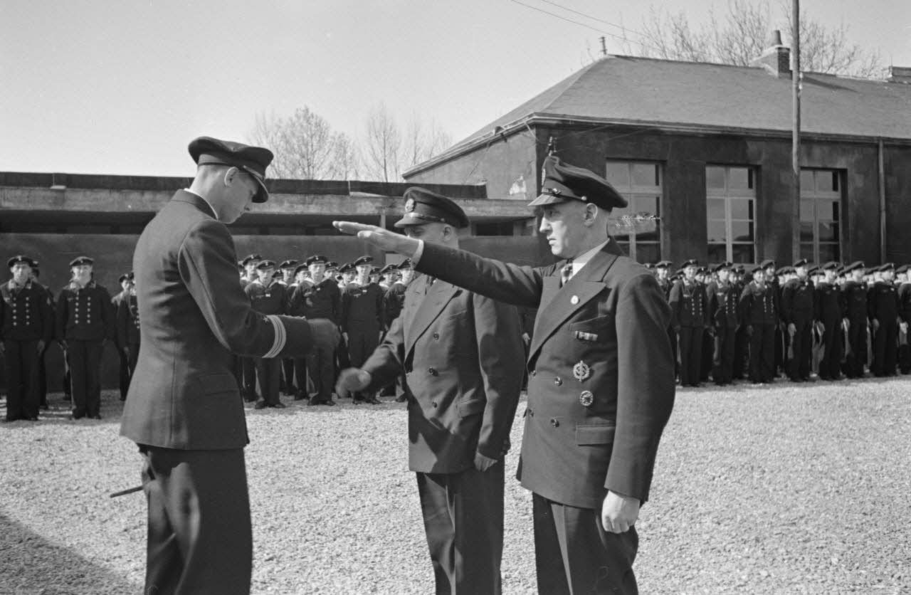 Une remise de décorations à des marins de la marine marchande allemande, à Saint-Nazaire.