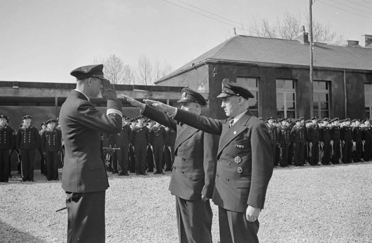 Des officiers et les marins de la Kriegsmarine sont au garde-à-vous.