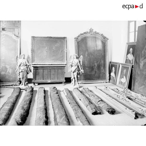 La salle d'un dépôt d'oeuvres d'art évacuées à Coussey.