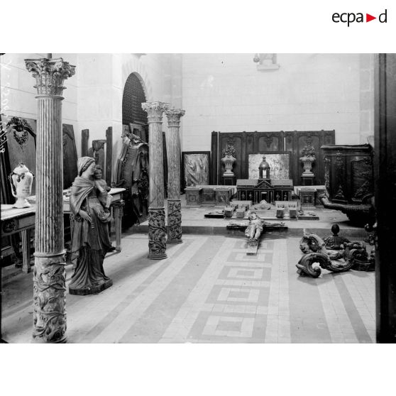 Le reportage présente également le déménagement et le stockage de mobiliers religieux et d'oeuvres d'arts effectué par des prisonniers allemands.
