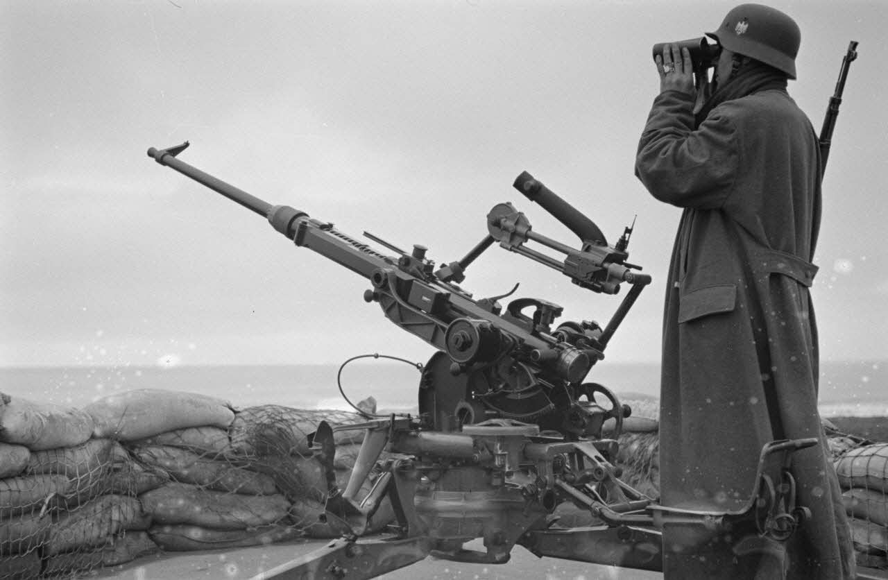 Une sentinelle de la 1re batterie du MAA 280 (Marine Artillerie Abteilung) à la Pointe St-Gildas commune de Préfailles.