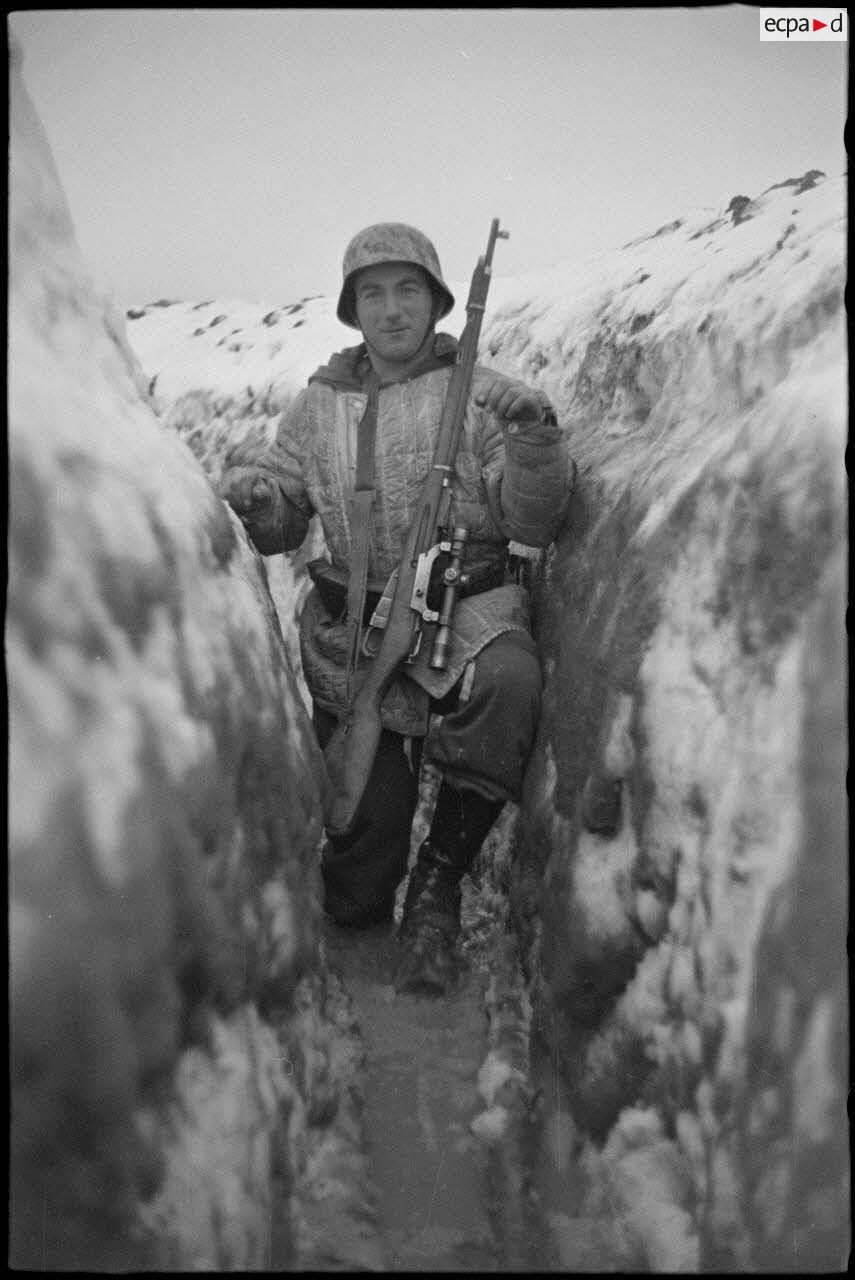 Une tranchée tenue par des fantassins de la Luftwaffe.