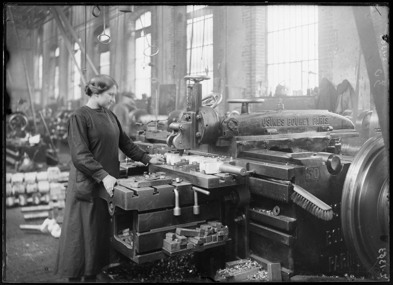 Unieux (Loire). Usines Holtzer. Machines outils diverses, occupées par des femmes. [légende d’origine]
