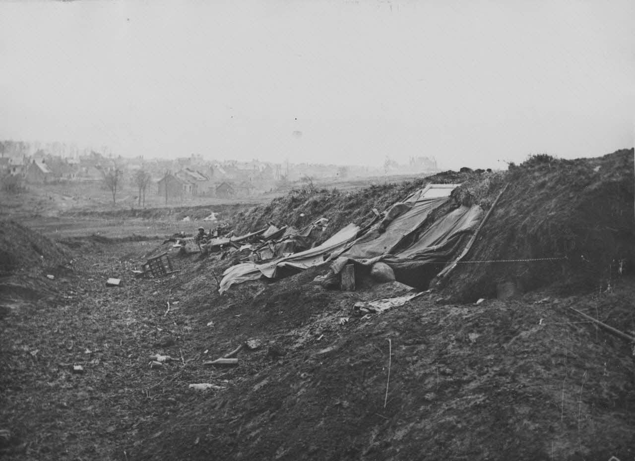 V2668 / 10. Région de Villers Bretonneux (Somme), abris et poilus derrière la 1re ligne.