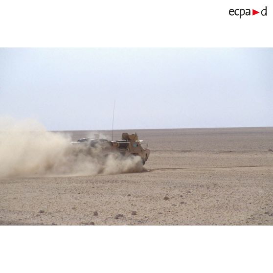 Avancée d'une colonne de VAB dans le désert.