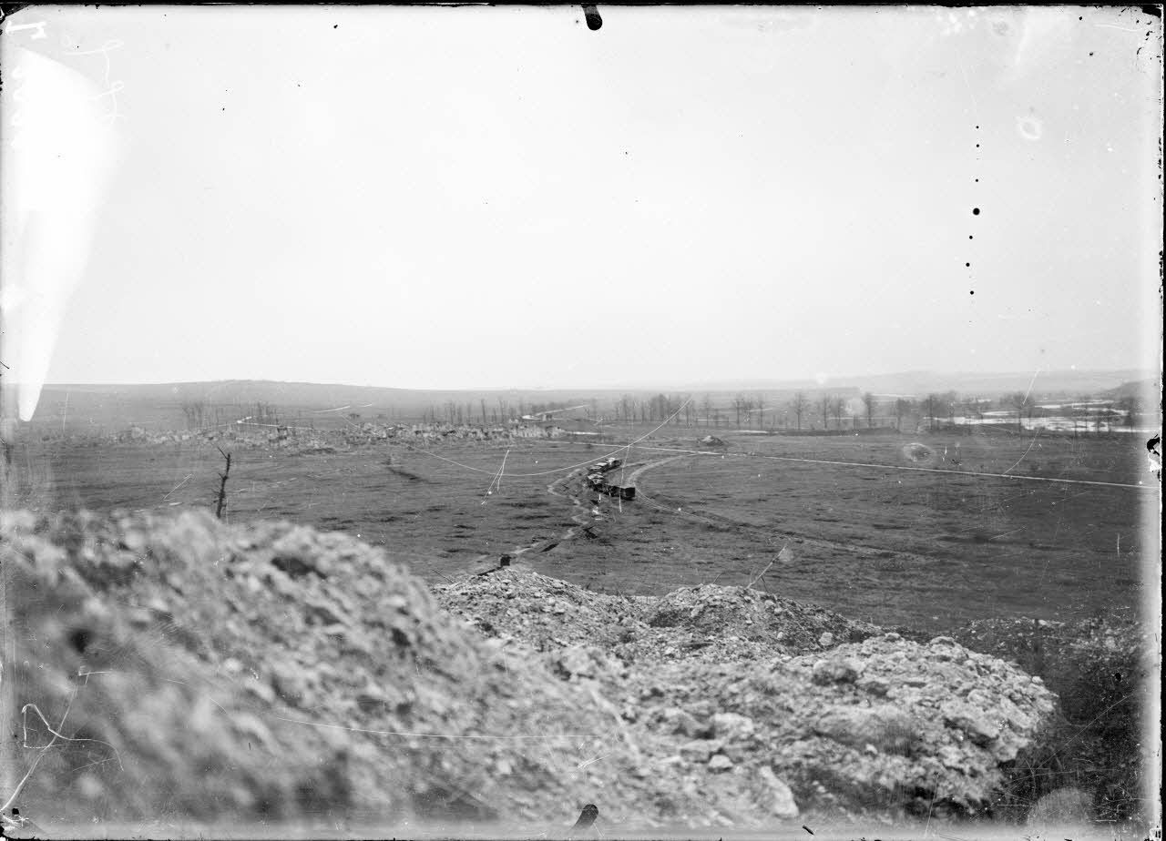 - à Vacherauville : vue prise de la côte du Poivre sur les villages de Bras et de Charny, vue prise des premières lignes allemandes enlevées lors de l'offensive du 15 décembre 1916 au sud-est de Vacherauville (SPA 42 L 2021/2024), les abords du village en ruines, le commandant Thinus et ses officiers (SPA 32 L 2032), des soldats dans les tranchées de départ de l'offensive au lieu-dit du monument (SPA 42 L 2043), le dernier train arrivé, avant l'offensive, au pied de la côte du Poivre (détruit, SPA 42 L 2046) ;