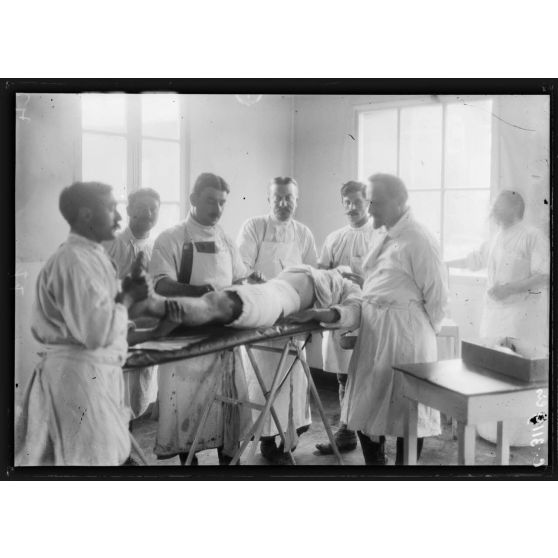 Vadelaincourt (Meuse). Hôpital 12. Blessés attendant le train d'évacuation.