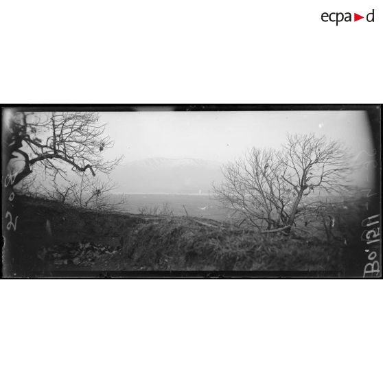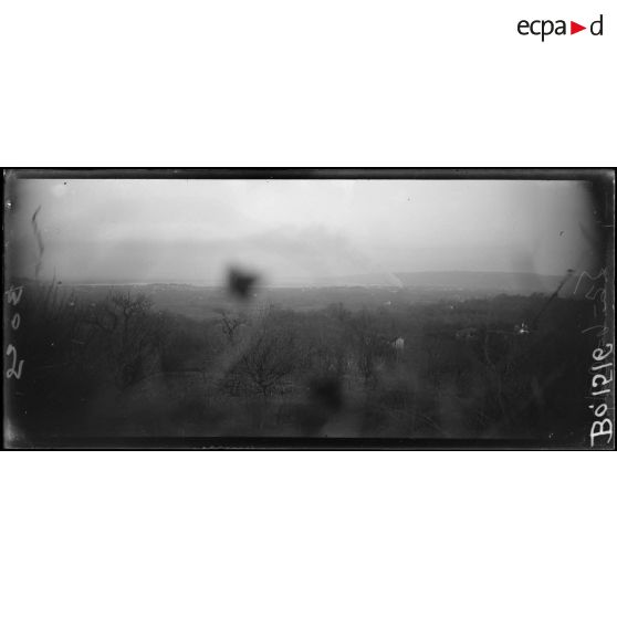 Vallée de la Piave. Panorama. Au fond, village en feu près des lignes.