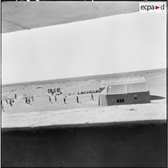 Vallée de la Zousfana. Poste de la 6e batterie du 2/1er RAMa (1er régiment d'artillerie de marine). L'école sous tente.