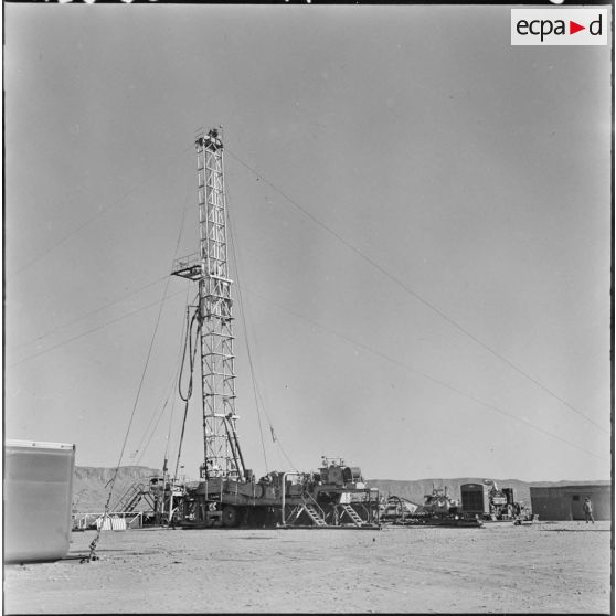 Vallée de la Zousfana. Une sonde de la SNREPAL qui est protégée par la 6e batterie du 2/1er RAMa (1er régiment d'artillerie de marine).