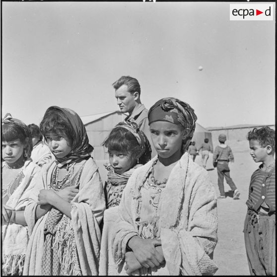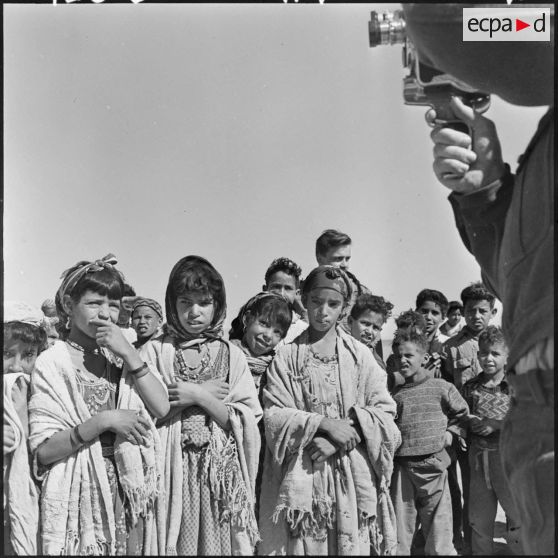 Vallée de la Zousfana. Les enfants des écoles au poste de la la 6e batterie du 2/1er RAMa (1er régiment d'artillerie de marine).