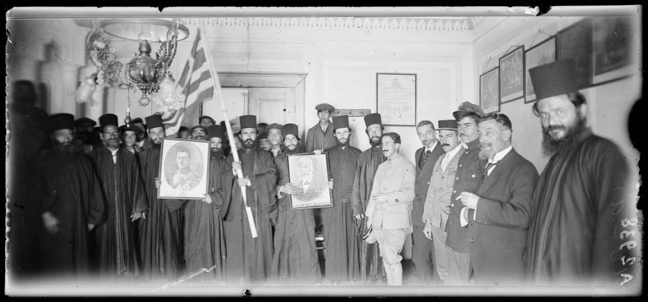 Une mission française visite les monastères du Mont Athos : Vatopédi et Pantéleimon. Les couvents sont pavoisés pour fêter l'armistice et la mission française est félicitée pour la victoire (A2930 à A2946). Peut-être, parmi les personnalités civiles, l'historien (byzantiniste), archéologue, photographe Gabriel Millet (A2938, A2939).