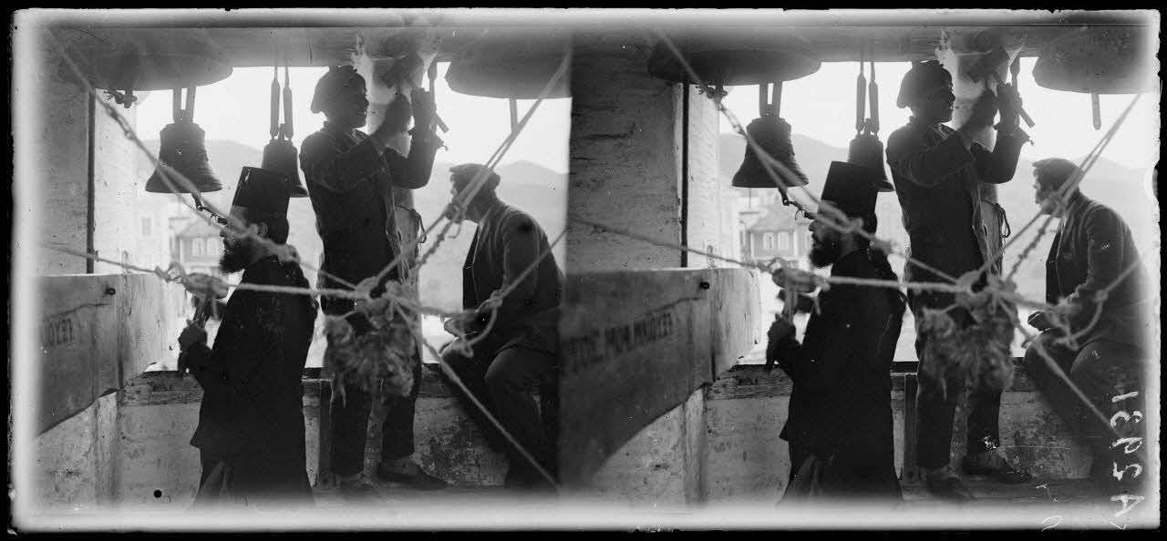 Vatopedi. Un caporal français carillonne en l'honneur de la victoire.