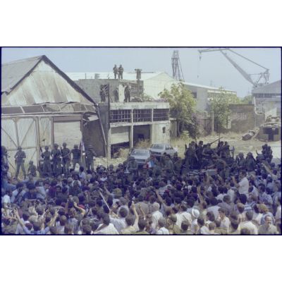 RICM et milices palestiniennes attendant l'arrivée de Yasser Arafat dans le port de Beyrouth.