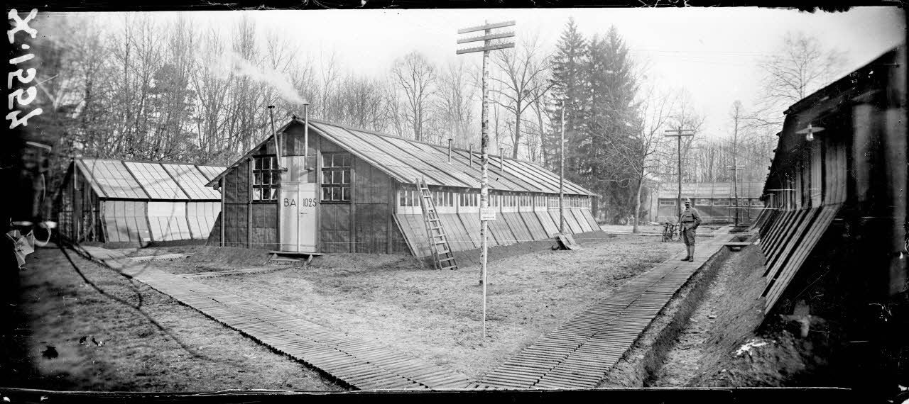 Verberie (Oise). Baraque Adrian servant de bureau au QG.