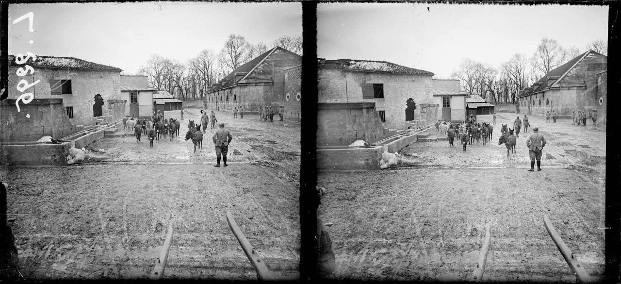 Verdun, caserne d'Anthouard. Les ânes allant à l'abreuvoir. [légende d'origine]