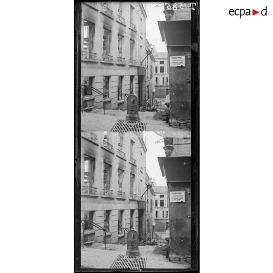 Verdun. Incendie rue Mazel. Travaux de déblaiement après l'incendie.