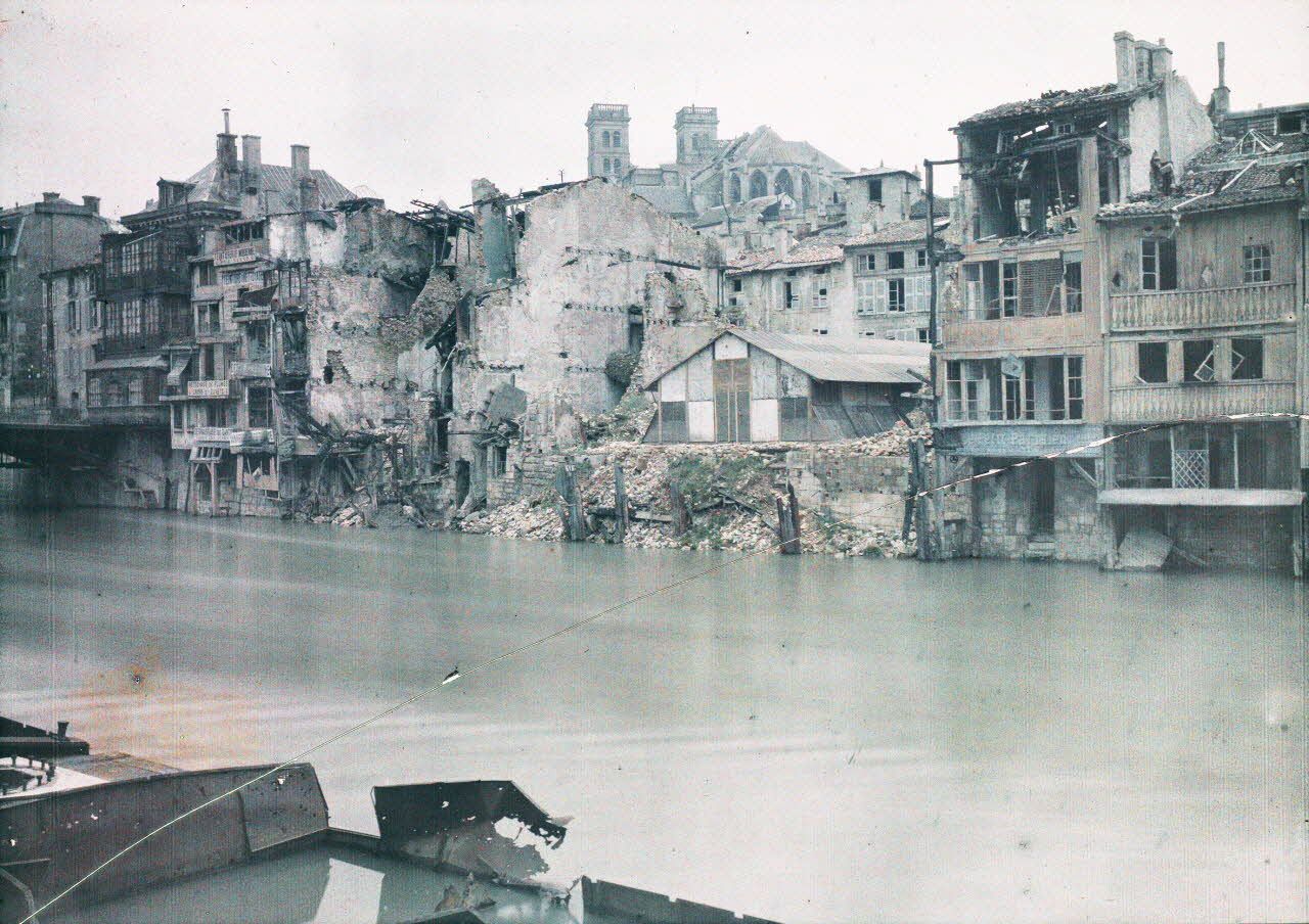 - les ruines et destructions occasionnées par la guerre à Verdun, Reims, Arras ou ailleurs : maisons, églises, cathédrales, lieux symboliques des grandes villes de province en ruines ;