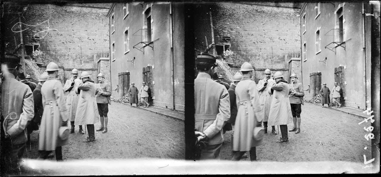 - la citadelle de Verdun : la visite d' Albert Thomas (ministre de l'Armement), accompagné de Monsieur Bissolati (SPA 49 L 2273/2264), du général Avaresco (SPA 49 L 2265/2269) et du général Dubois (SPA 49 L 2271), le général Dubois et son état-major (SPA 49 L 2407), les journalistes américains arrivés à Verdun (SPA 49 L 2262), en compagnie du général Dubois ( SPA 49 L 2256/2275/2276), le général Avaresco coiffant son casque (SPA 49 L 2274), le déjeuner offert par le général Dubois à messieurs Thomas et Bissolati (SPA 49 L 2306/2307), l'arrivée du courrier à la citadelle (SPA 49 L 2268), le capitaine Lalande du 340e RI (organisateur du service de ravitaillement par âne, SPA 49 L 2292), les ânes à l'abreuvoir de la caserne Anthouard (SPA 49 L 2293/2296/2302), une démonstration sur l'emploi des masques à gaz (modèle M2) est faite aux conducteurs des ânes