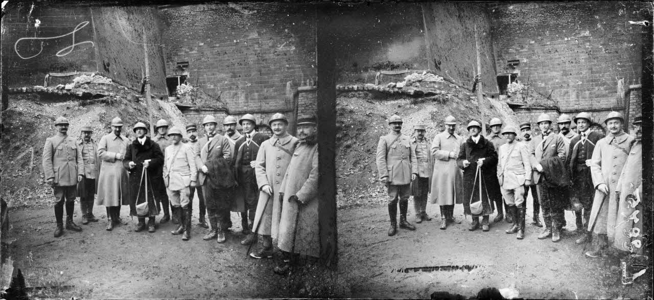 - la citadelle de Verdun : la visite d' Albert Thomas (ministre de l'Armement), accompagné de Monsieur Bissolati (SPA 49 L 2273/2264), du général Avaresco (SPA 49 L 2265/2269) et du général Dubois (SPA 49 L 2271), le général Dubois et son état-major (SPA 49 L 2407), les journalistes américains arrivés à Verdun (SPA 49 L 2262), en compagnie du général Dubois ( SPA 49 L 2256/2275/2276), le général Avaresco coiffant son casque (SPA 49 L 2274), le déjeuner offert par le général Dubois à messieurs Thomas et Bissolati (SPA 49 L 2306/2307), l'arrivée du courrier à la citadelle (SPA 49 L 2268), le capitaine Lalande du 340e RI (organisateur du service de ravitaillement par âne, SPA 49 L 2292), les ânes à l'abreuvoir de la caserne Anthouard (SPA 49 L 2293/2296/2302), une démonstration sur l'emploi des masques à gaz (modèle M2) est faite aux conducteurs des ânes
