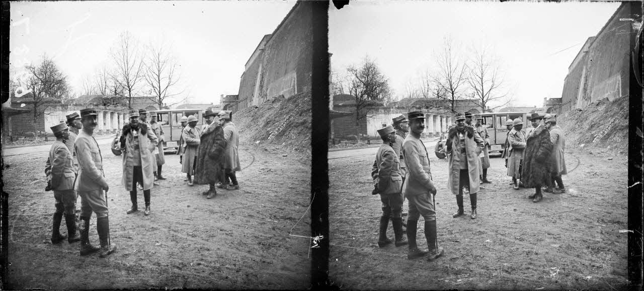 - la citadelle de Verdun : la visite d' Albert Thomas (ministre de l'Armement), accompagné de Monsieur Bissolati (SPA 49 L 2273/2264), du général Avaresco (SPA 49 L 2265/2269) et du général Dubois (SPA 49 L 2271), le général Dubois et son état-major (SPA 49 L 2407), les journalistes américains arrivés à Verdun (SPA 49 L 2262), en compagnie du général Dubois ( SPA 49 L 2256/2275/2276), le général Avaresco coiffant son casque (SPA 49 L 2274), le déjeuner offert par le général Dubois à messieurs Thomas et Bissolati (SPA 49 L 2306/2307), l'arrivée du courrier à la citadelle (SPA 49 L 2268), le capitaine Lalande du 340e RI (organisateur du service de ravitaillement par âne, SPA 49 L 2292), les ânes à l'abreuvoir de la caserne Anthouard (SPA 49 L 2293/2296/2302), une démonstration sur l'emploi des masques à gaz (modèle M2) est faite aux conducteurs des ânes