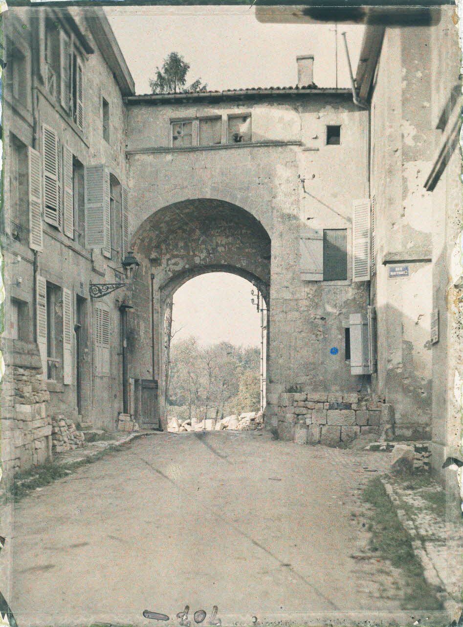 Correspond à l'autochrome A 12980 de la collection Albert Kahn. Le n° dans la 2e colonne du registre AK est 707. L'ancienne référence devrait donc être CA 707 et non CA 723 qui correspond à une autre vue de la porte Châtel.