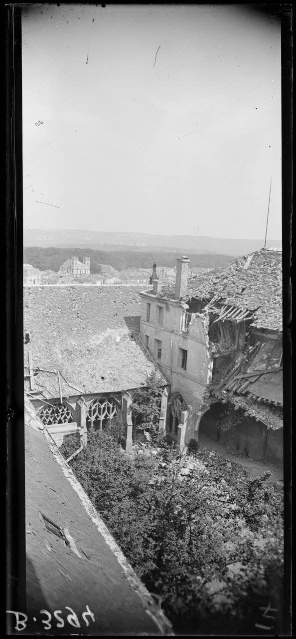 Verdun, vue prise d’une tour de la cathédrale dans la direction du fort St Michel, au 1er plan cloître de la cathédrale. [légende d’origine]