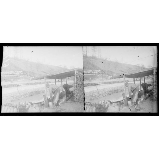 Forêt d'Argonne. Le Rond Champ (sud est de Vienne le Château) (Marne). Lieu de cantonnement des troupes de seconde-ligne. Baraquement (Janv. 1917).