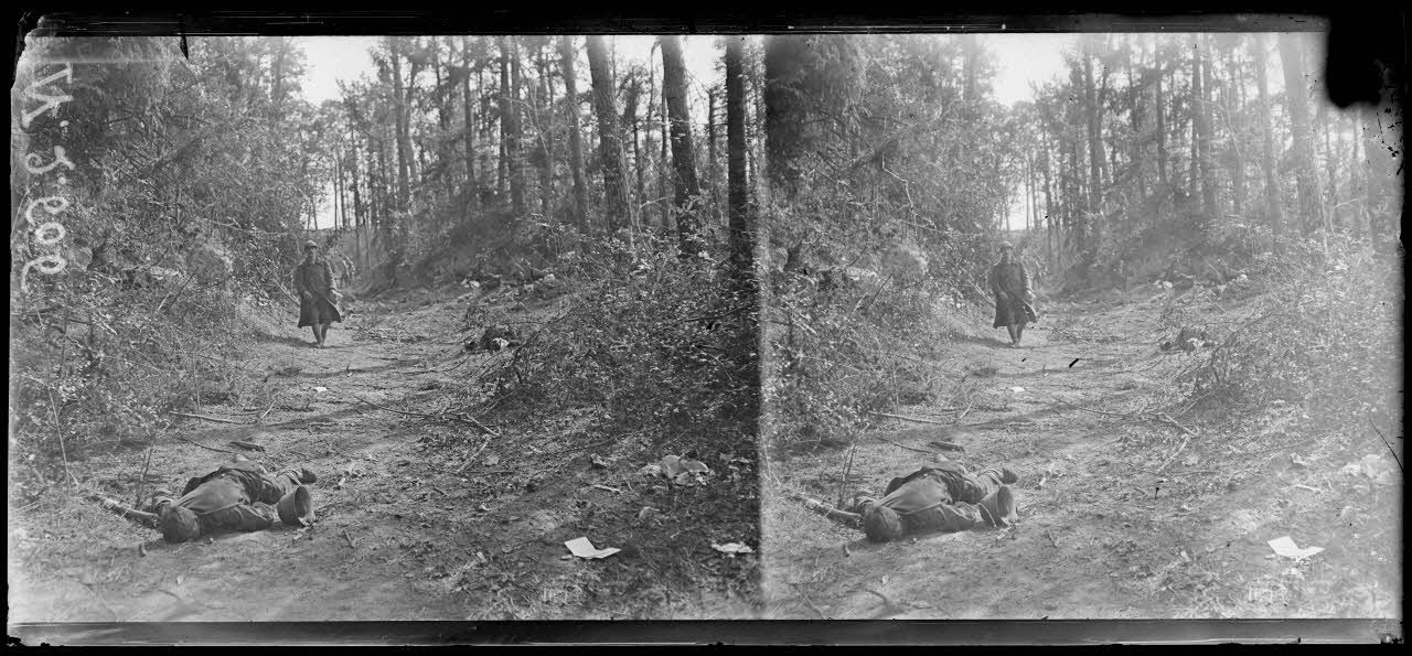 Vers Longpont (ferme de Beaurepaire). Terrain conquis par la 38e DI, régiment d'infanterie coloniale du Maroc. Cadavres allemands.