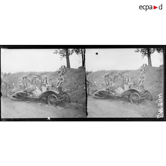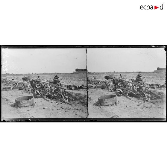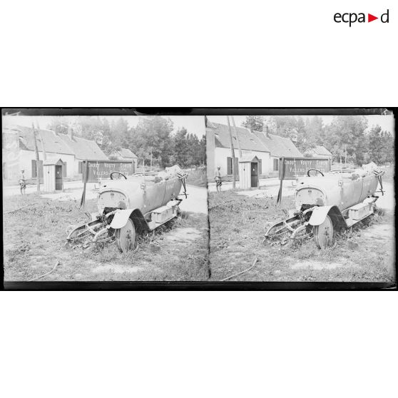 Près de Château-Thierry, Aisne, automobile démolie par un obus.