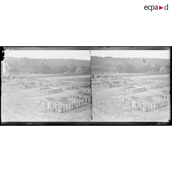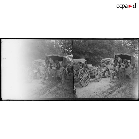- Près de Château-Thierry (Aisne, 25/07/1918, LM 294 à LM 297) des véhicules acheminent des munitions vers un dépôt installé dans un champ.