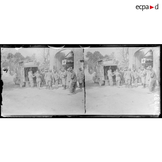 Près de Vez, Marne, embarquement de blessés au poste de secours.