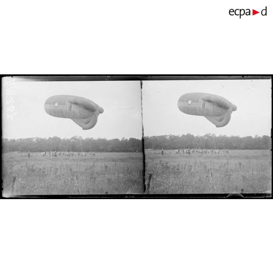 Région du Mont-Cornillet, Marne, ballon d'observation atterrissant.