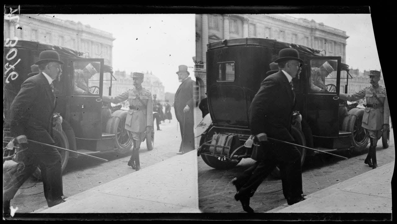 Versailles. Signature du traité de paix, arrivée de monsieur Clemenceau et monsieur Wilson.