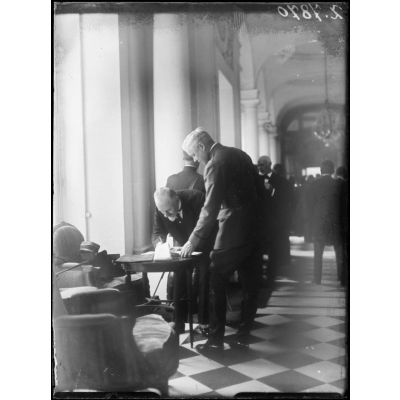 Versailles, Trianon palace. Mr Wilson et Mr Lloyd George à la remise du traité de paix.