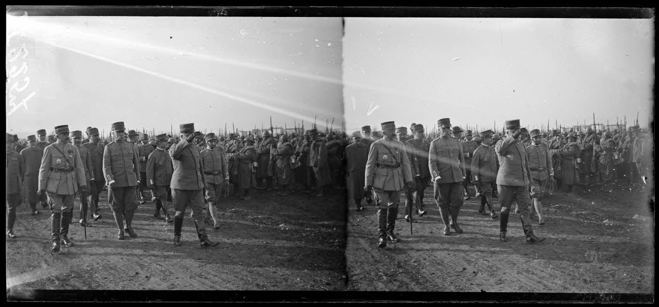 A Vicenza, le général Maistre et le général Pecori Giraldi passent en revue les troupes italiennes de la brigade Sassari, qui s'est particulièrement distinguée à l'attaque de Sasso Rosso (Sassorino dans le registre de légendes d'origine). Un avion français survole la cérémonie. Les deux généraux quittent ensuite le terrain, accompagnés de leurs état-majors. Des soldats français, anglais et italiens sont présents.