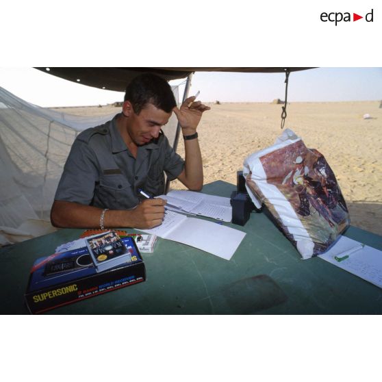 Vie quotidienne de la division Daguet sur son lieu d'implantation baptisé Miramar, dans la région d'Hafar al Batin.
