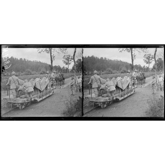 Lachalade (Meuse). Retour des permissionaires en Decauville.