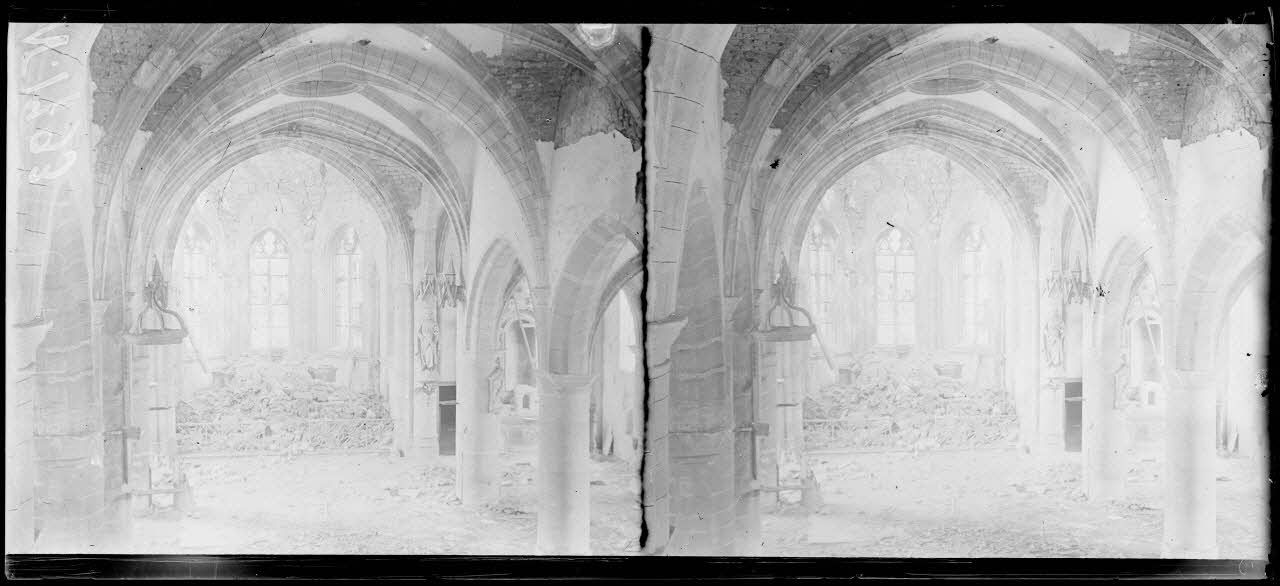 - À Vienne-le-Château (Marne, le 09/08/1917), la façade de l'église garde les traces des bombardements.