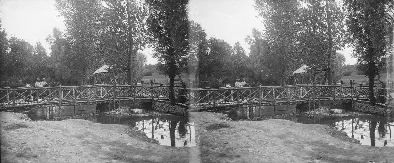 Ville-sur-Cousances (Meuse). Pont rustique et chevaux dans la Cousances . [légende d’origine]