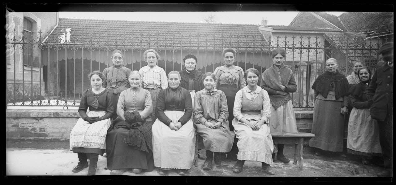 - A Villedommange (Marne, 12/01/1918, V 2318 à V 2323), plusieurs groupes d'habitants du village sont réunis pour établir des photographies d'identité.