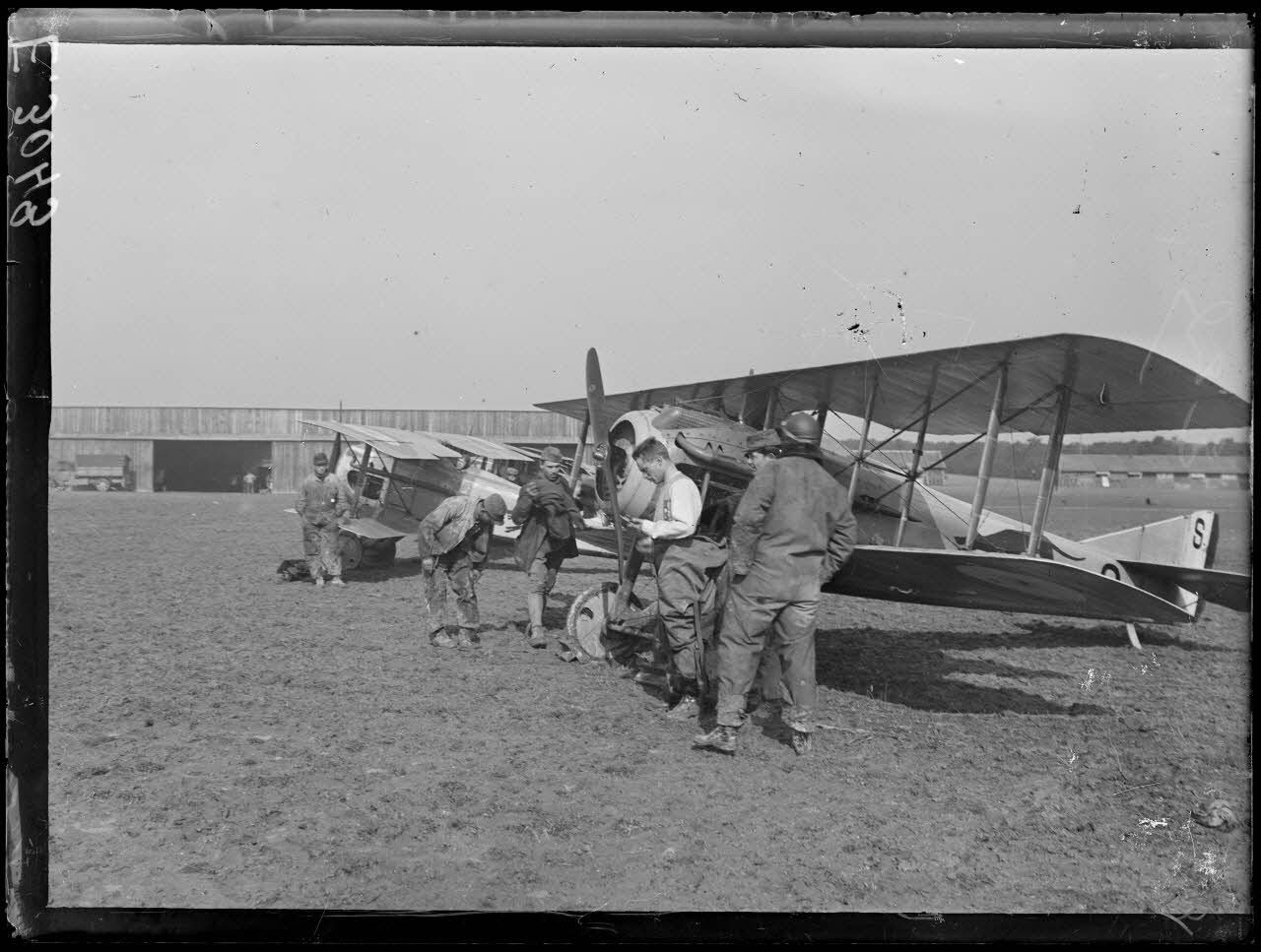 Villeneuve. Marne. Camp d'aviation. Avions prêts au départ.