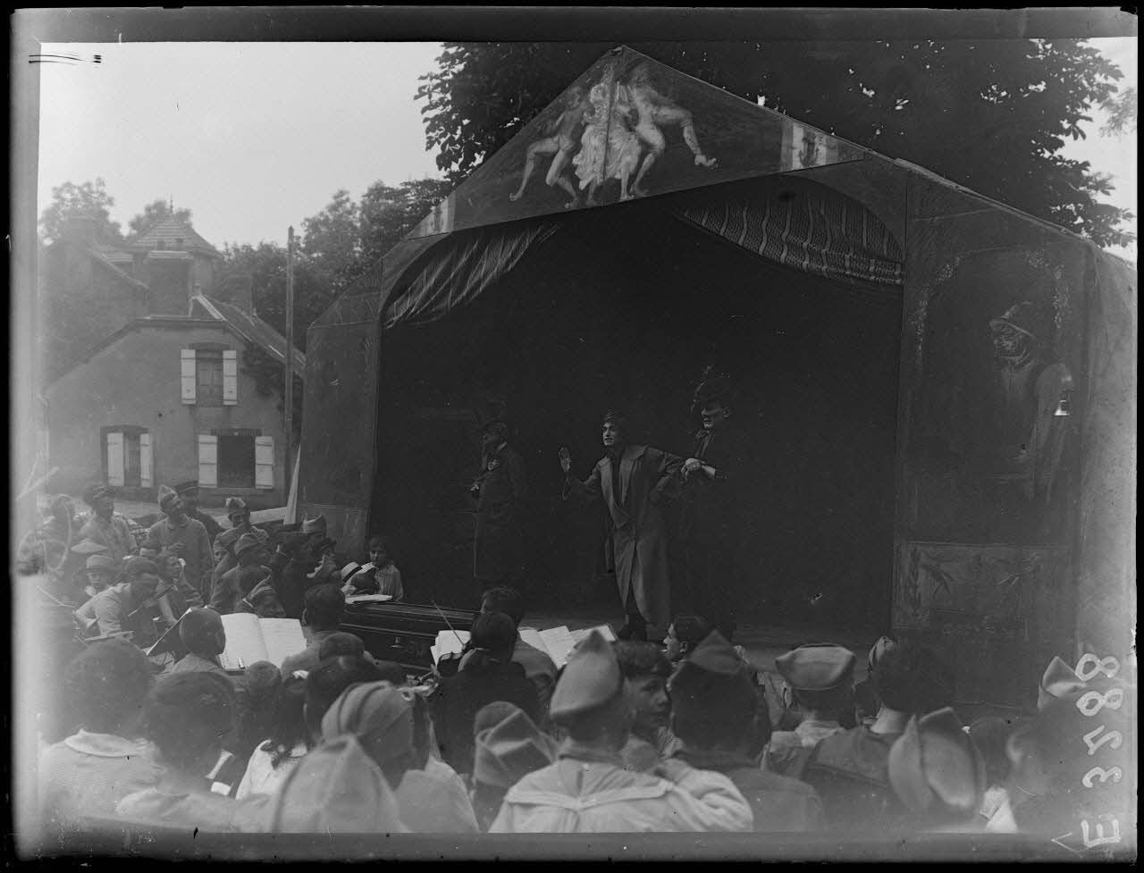 Villers Allerand. Marne. Cinéma concert de la 3eme Division coloniale. La représentation. [légende d'origine]