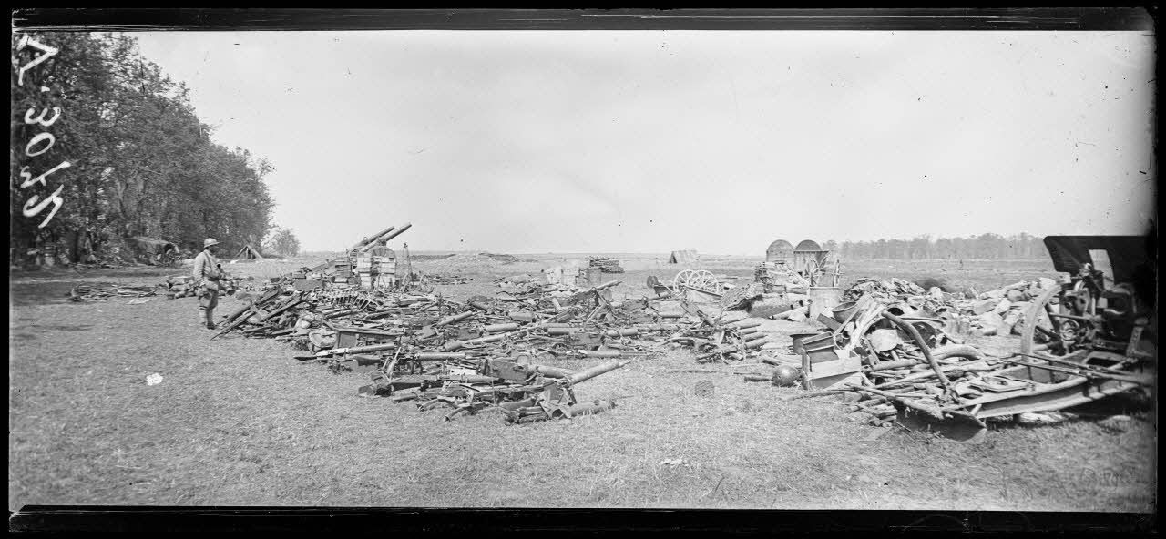 Noyon, Oise, quartier de cavalerie et canons anglais récupérés.