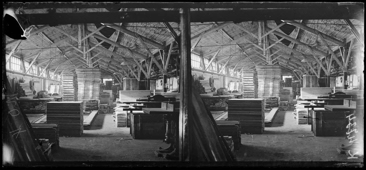 Vincennes. Ateliers de fabrication des baraquements Adrian. Fabrication des panneaux.