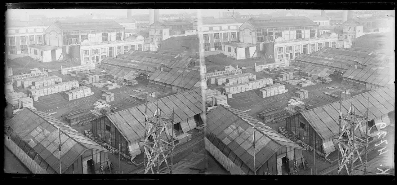Vincennes. Ateliers de fabrication des baraquements Adrian. Fabrication des panneaux.