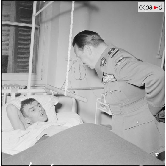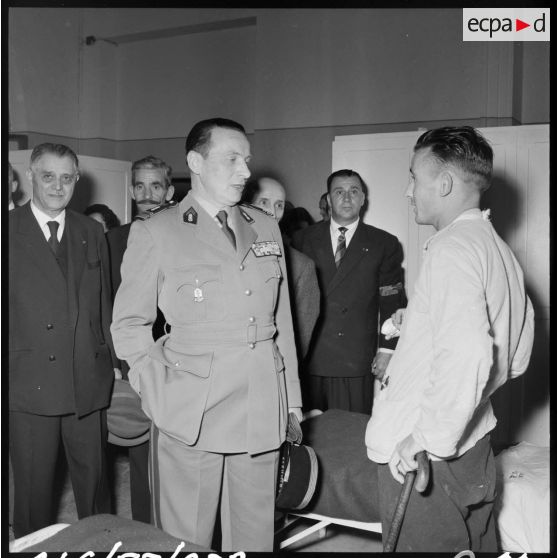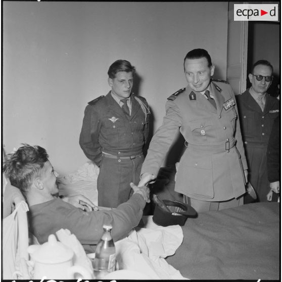 Le colonel Marguet chef d'état-major de la Xe RM distribue des colis aux légionnaires hospitalisés à l'hopital Maillot.